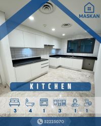 للإيجار: دور في صباح السالم (ميدان التمدين) بإطلالة بحرية - الطابق 18. 3 غرف نوم ماستر، صالة استقبال مع حمام للضيوف، غرفة خادمة، غرفة سائق مع مدخل مستقل، غرفة غسيل، مطبخ، 3 مواقف سيارات خاصة للشقة. الخدمات تشمل مسبح داخلي للكبار، مسبح داخلي للصغار، صالة رياضية مجهزة بالكامل تعمل على مدار الساعة، خدمة أمن، ومصعد خدمة منفصل.
