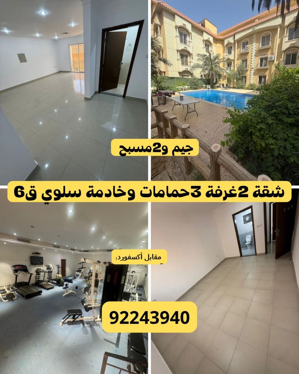 شقة راقية جدا ومساحات كبيرة في سلوى قطعة 6 مقابل أكاديمية أكسفورد. تحتوي على غرفتين وصالة كبيرة ومطبخ و3 حمامات. الاطلالة على المسبح البناية تضم جيم و2 مسبح وجاردن وخدمات ترفيهية الإيجار يشمل الصيانة والكهرباء والمياه والصيانة. التواصل للمزيد من المعلومات