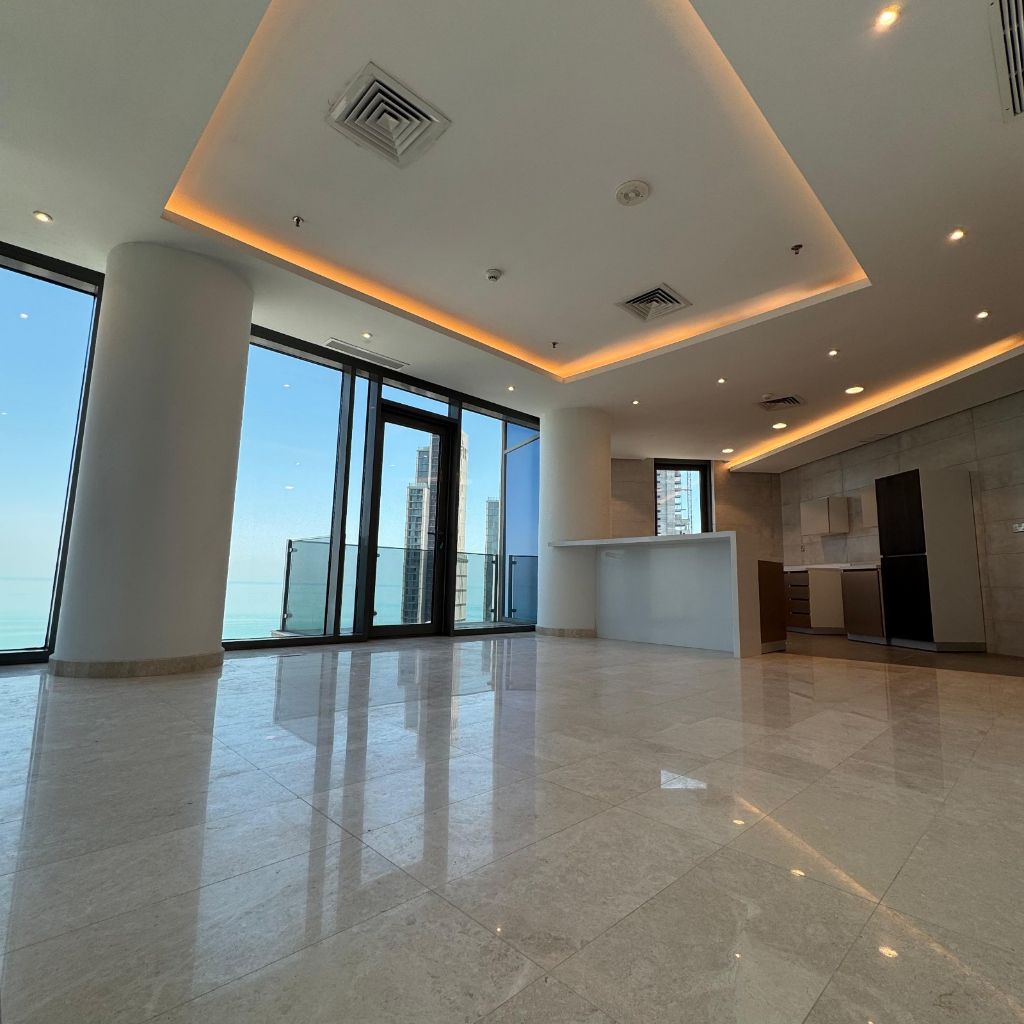 شقة نصف مفروشة باطلالة بحرية وبالكونة للإيجار في ضاحية حصة المبارك. المساحة الاجمالية 120 متر مربع، تشطيب راقي، اطلالة بحرية، مدخل ومخرج سهل، تتكون من غرفتي نوم (احداهما ماستر) صالة مع بالكونة، مطبخ أمريكي مجهز بالكامل، 4 حمامات منها حمام للضيوف، غرفة عاملة مع حمامها الخاص، ومتوفرة في البرج لوبي استقبال، أمن، كاميرات، مسبح، جيم، مواقف سيارات تحت الأرض، شامل الكهرباء والماء والصيانة