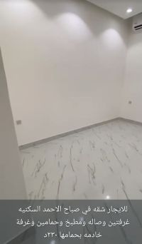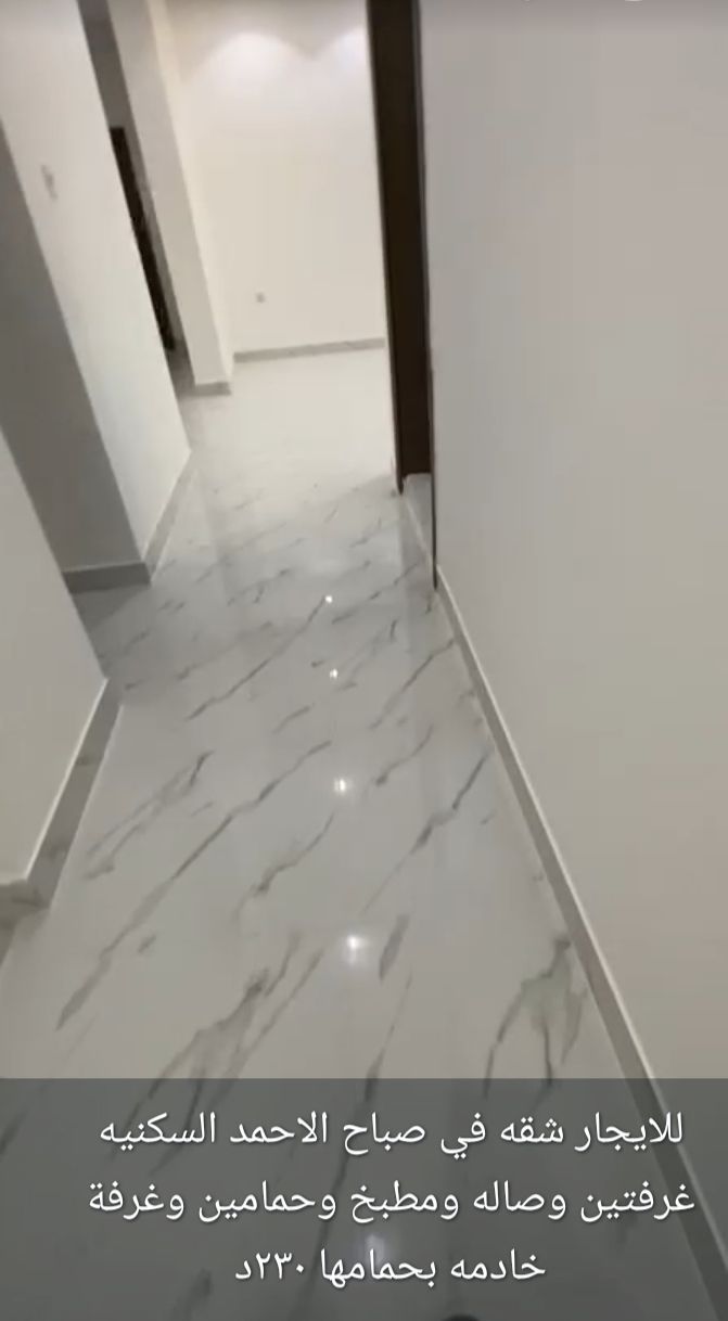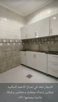 للإيجار: شقة في منطقة صباح الأحمد السكنية تتكون من غرفتين وصالة ومطبخ وحمامين وغرفة عاملة منزلية بحمامها الخاص. الإيجار 230 ديناراً. للاستفسار، اتصل بشركة المختار العقارية، أبو محمد.