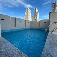 بنت هاوس بإطلالة بحرية، أول ساكن، للإيجار في منطقة المبارك، موقع مميز، تشطيب راقي، المساحة 200 متر مربع. الطابق الأول يتكون من مسبح خاص، صالة مع حمام ضيوف، غرفة نوم ماستر، مطبخ أمريكي مجهز، غرفة عاملة مع حمامها. الطابق الثاني يتكون من غرفة نوم ماستر، غرفتي نوم، منزع ملابس مع حمام، متوفر 3 بلكونات، 2 مخزن، متوفر جيم، أمن وكاميرات، لوبي، مواقف سيارات، شامل ماء وكهرباء وصيانة، عائلات فقط. الإيجار 2800.