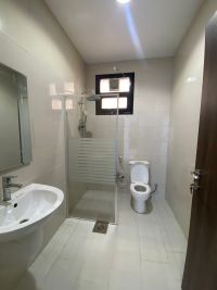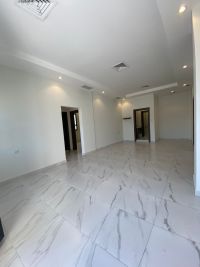 للإيجار: شقة أرضية في أبو الحصانية بثلاث غرف، تشمل غرفة نوم رئيسية بمدخل خاص، وصالة بحمام ضيوف، وغرفة عاملة بحمام، وموقفين للسيارات. الإيجار 550.