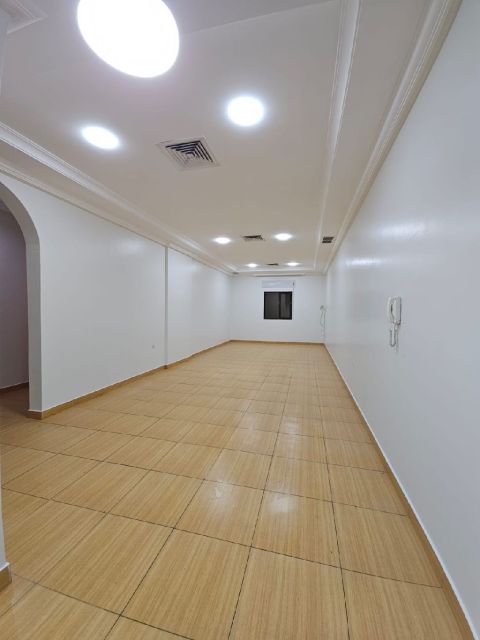 شقة جديدة بالكامل للإيجار في العدان، 3 غرف نوم، غرفة رئيسية، غرفة خادمة، موقف سيارات مظلل، وتصميم حديث. تشمل غرفة معيشة، ثلاث غرف نوم (غرفة رئيسية واحدة) غرفتي نوم بحمام مشترك، مطبخ مغلق، غرفة خادمة مع حمام، موقف سيارات مظلل. الإيجار 500 دينار كويتي (الجهة الخلفية)