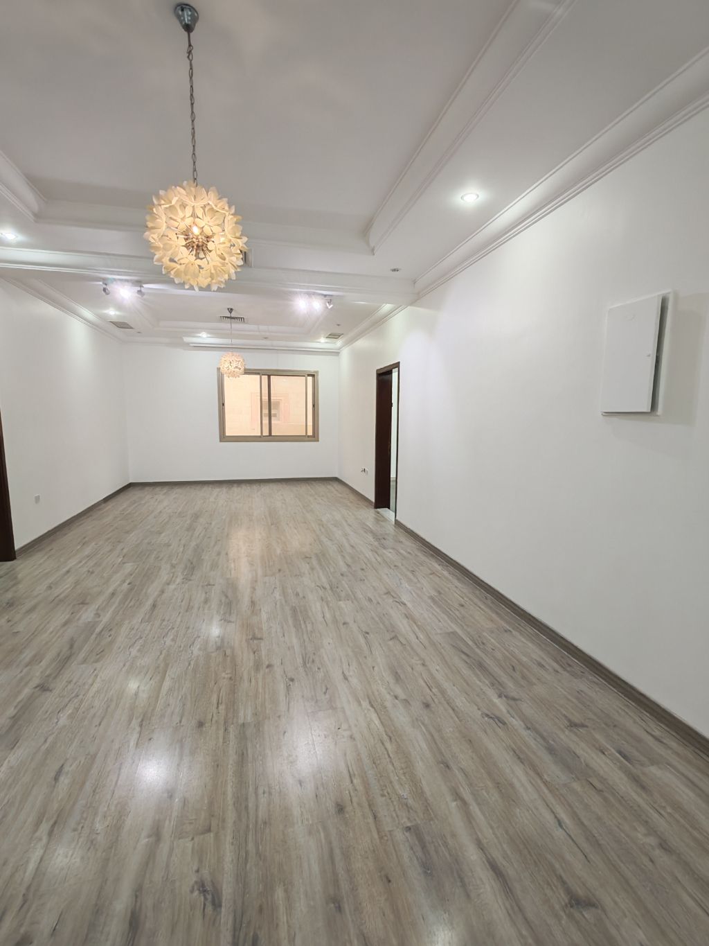 For rent in Fintas, a large apartment on the second floor with an elevator. It consists of 3 master bedrooms, a large living room with a guest bathroom, a fully equipped kitchen, a laundry room, a maid's room with a bathroom, and air conditioning. The monthly rent is 600 Kuwaiti dinars for a small family, and we have more available.