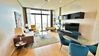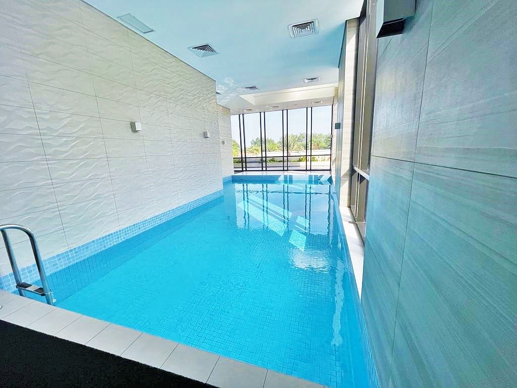 Modern 2 - bedroom furnished apartment with balcony and panoramic sea view for rent in a nice location in Salmiya near Gulf Road. It has a nice living room with a large balcony, 2 spacious bedrooms (1 master bedroom) 2 bathrooms, a fully equipped kitchen, and a maid's room with a bathroom. Top finishes and facilities are provided, strictly for expats only. rent is KD1000. Deposit and realtor fees