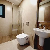 A semi furnished apartment (first occupant) for rent in Salmiya with super deluxe finishing. It consists of 2 bedrooms, one of which is a master bedroom, 3 bathrooms, a living room, and a fully equipped kitchen. Features include wardrobes in the rooms, a maid's room with its own bathroom, a balcony, a swimming pool, a gym, internet, security, cameras, a reception lobby, weekly cleaning service, maintenance
