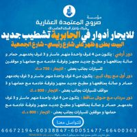 Ground floor consisting of 4 rooms, one of which is a master, and 3 rooms served by a bathroom, a living room with its utilities, a new equipped kitchen, a maid's room with its bathroom, and two adjacent parking spots - Rent 750 Kuwaiti dinars. First floor with a large roof, consisting of 4 rooms, one of which is a master, and 3 rooms served by a bathroom, a living room with its utilities, a new equipped kitchen, a maid's room with its bathroom, and 3 adjacent parking spots - Rent 850 Kuwaiti dinars. Basement floor with a sunken courtyard, consisting of 4 rooms, one of which