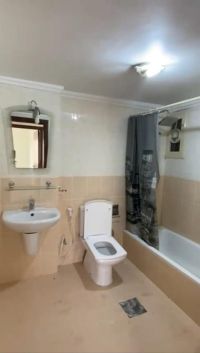 An apartment for rent in Salmiya, containing two bedrooms, a living room, two bathrooms, and a parking space. The rent is 330 Kuwaiti dinars with a half-month commission. Electricity is the responsibility of the tenant. For families only. For residents. Ultra Homes Property Management Company. We have apartments, villas, and floors.