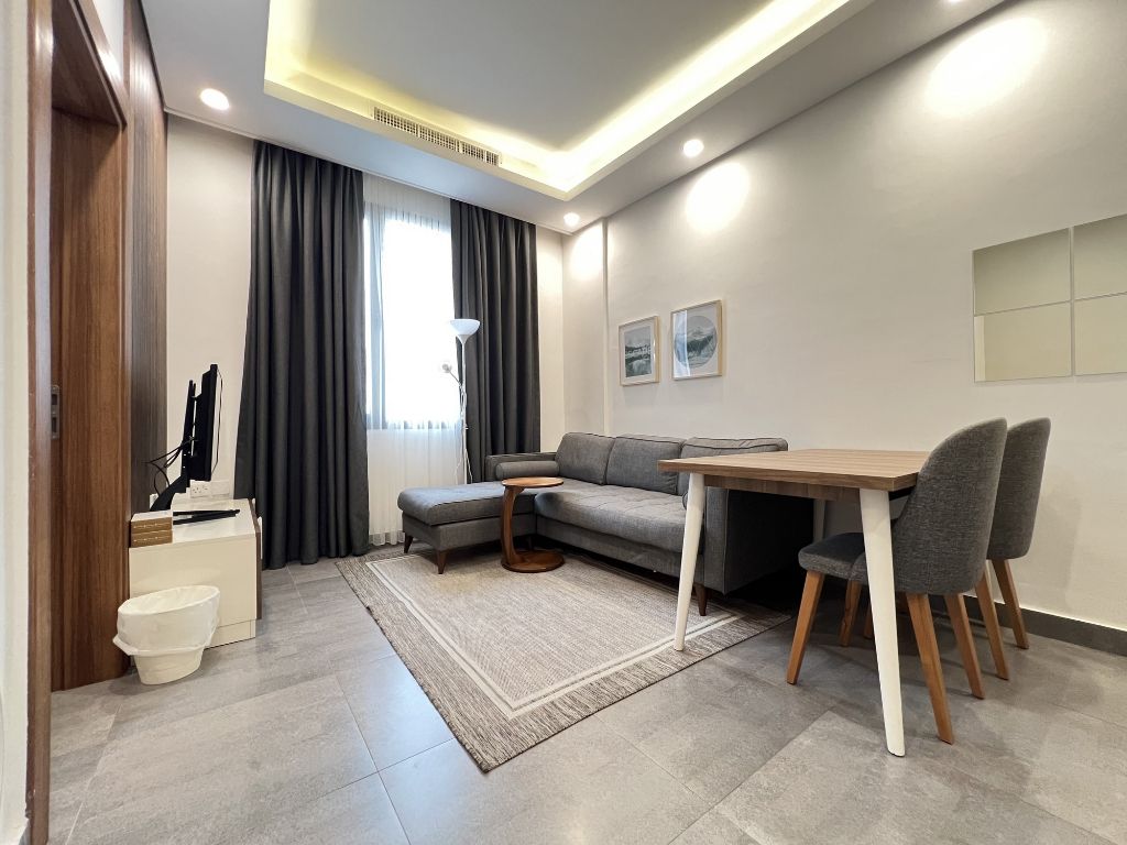 Salmiya - A furnished apartment with one bedroom, one bathroom, a kitchen, a living room, shaded parking, a small swimming pool, and a good gym. The rent is 400 Kuwaiti Dinars per month. Please contact Horizon Q8 Real Estate Company. A security deposit equal to one month's rent and real estate fees equivalent to half a month's rent apply. The map location is for guidance purposes.