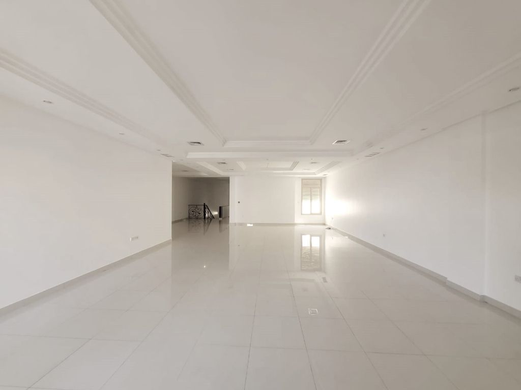 A very large duplex apartment in Bayan, Kuwait, located on the ground floor with a bright basement. It contains 4 bedrooms, 4 bathrooms, a spacious living and dining area, a large family room, a kitchen, and a small kitchen. There are two storage rooms, a maid's room with a shower, and a laundry room. It includes a private courtyard and a shaded parking space for two cars. For rent to residents only, the rent is 1200 Kuwaiti Dinars per month. Please contact Horizon K8 Real Estate Company.
