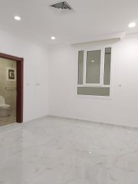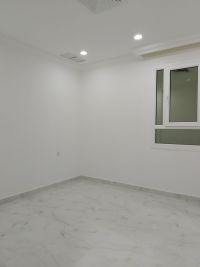 An apartment for rent in Al-Rumaithiya, 4 rooms including 2 master bedrooms, a maid's room with a bathroom, a laundry room, a living room with a guest bathroom, and two parking spaces. The rent is 650 Kuwaiti dinars with a half-month commission from Ultra Homes Property Management. We have apartments, villas, and floors available.
