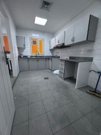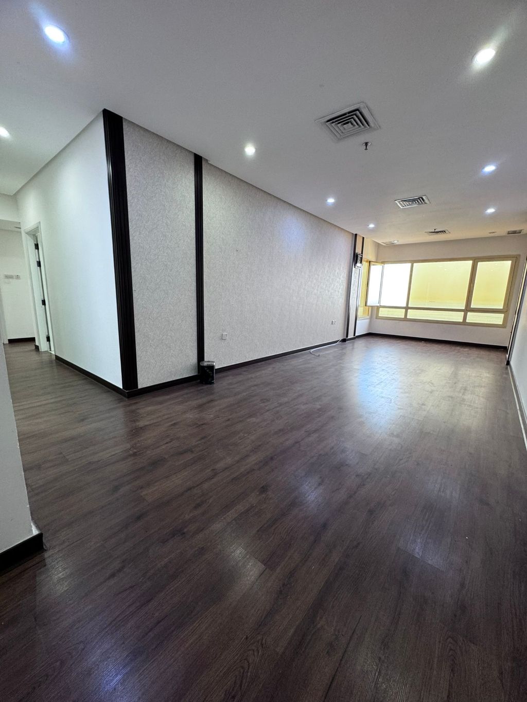 For rent, an unfurnished apartment in Hawally Square, Salmiya, consisting of 3 rooms, including a master bedroom with a large living room, a guest bathroom, a kitchen, and a maid's room with its own bathroom. There is a swimming pool on the roof with a gym and a parking lot in the basement. The rent ranges from 600 to 650 dinars depending on the floor, excluding electricity, with a real estate commission equivalent to half a month.