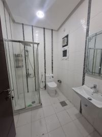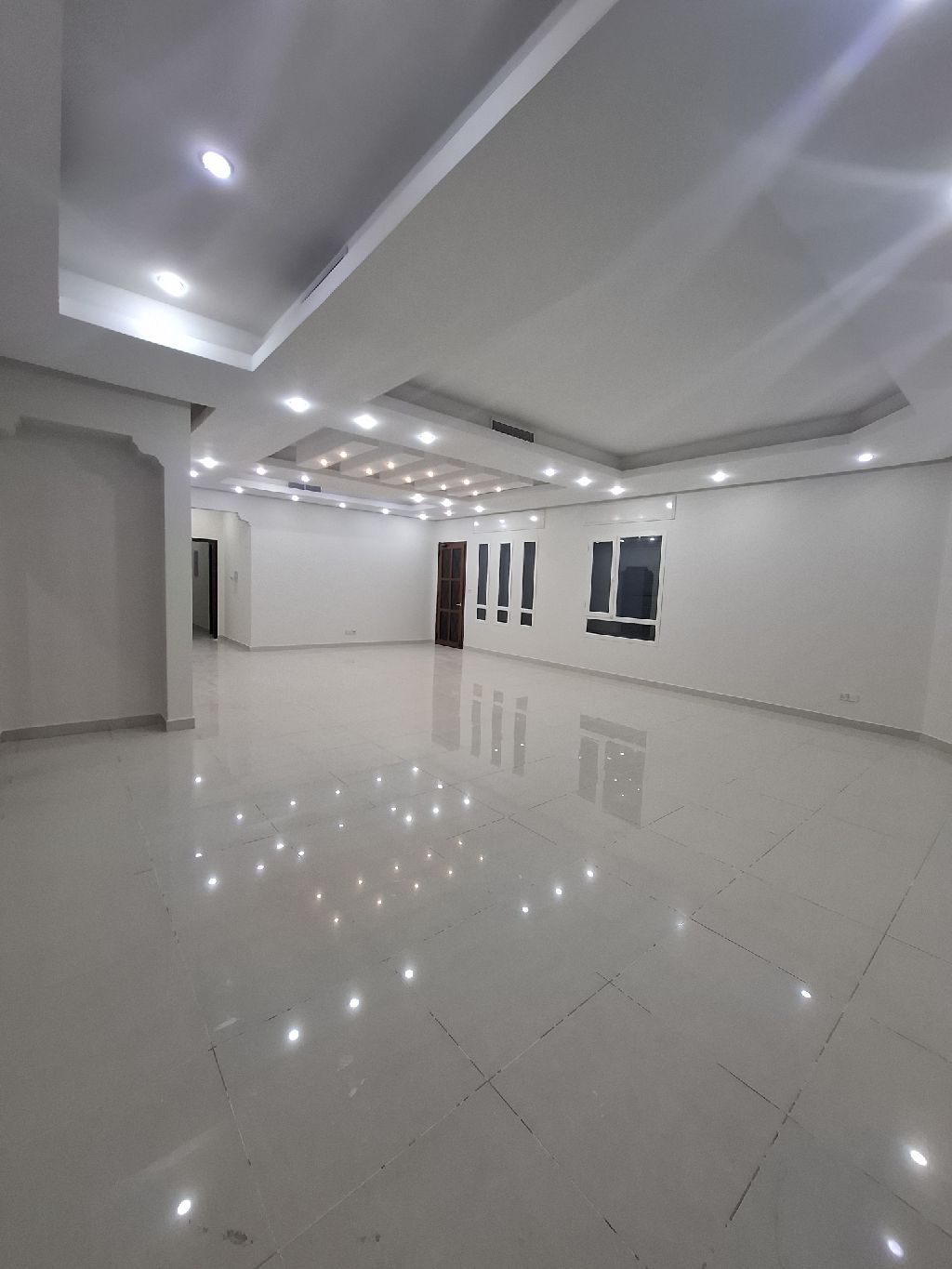 For rent, a ground-floor apartment in Al-Jabriya with a private entrance and a diwaniya (reception area). Super deluxe finishing, large spaces, very prime location close to Hadi Hospital and Al-Fahaheel Road. 3 bedrooms including a master bedroom and two bedrooms sharing a bathroom. Large living room with laundry and guest bathroom. Diwaniya with laundry and guest bathroom. Large equipped kitchen. Maid's room. 5 bathrooms. Central air conditioning. Satellite. Electric shutters. 3 shaded parking spots. Rent is 1000 dinars. For contact: Abu Sultan.