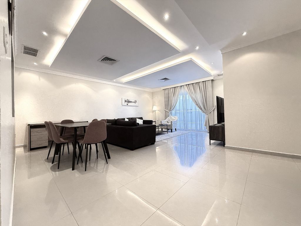 An apartment in a complex in the Al-Mangaf area, Kuwait - fully furnished, 3 bedrooms, 3 bathrooms, spacious living and dining area, semi-open kitchen. Balcony. Beautiful swimming pool with barbecue area, well-equipped gym, sauna. Furniture may vary. 24-hour security. Shaded parking. For rent to expatriates only. Rent is 600 Kuwaiti dinars per month. Please contact Horizon K8 Real Estate Company. Security deposit of one month's rent and real estate fees equivalent to half a month.