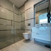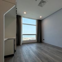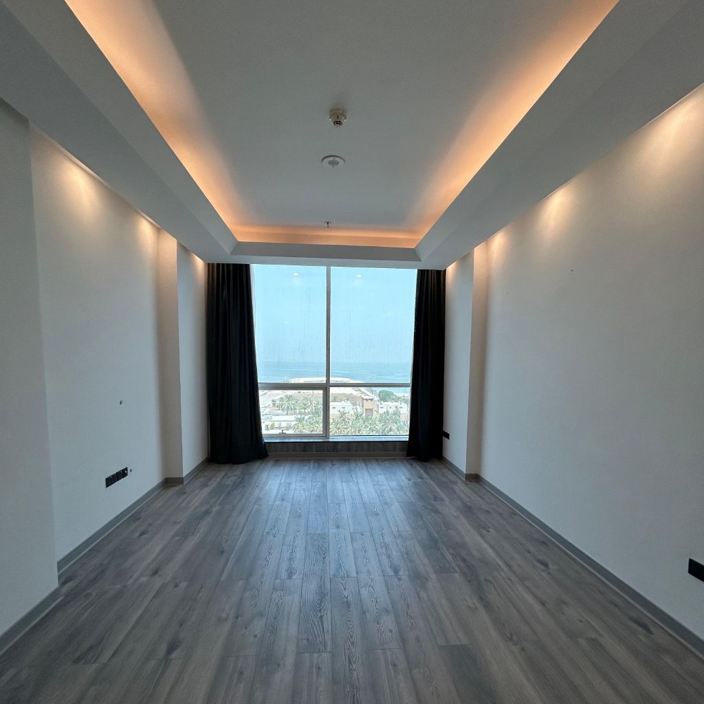 A semi furnished apartment for rent in Al - Mahboula, Piece 2, with a sea view. Super deluxe finishing, consisting of a hall, a fully equipped kitchen, 2 master bedrooms, 2 bathrooms, surveillance cameras, security, swimming pool, gym, reception lobby, internet, cinema, football and basketball court, billiards table, children'playground, private parking, cleaning service, including water, electricity