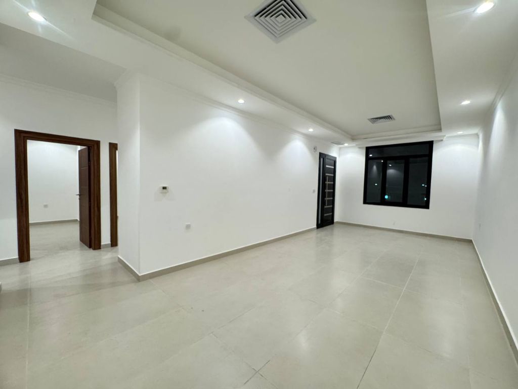 A brand new apartment consisting of three bedrooms: one master bedroom and two bedrooms with a shared bathroom, a large living room, a beautiful kitchen, a maid's room with a bathroom, and two parking spaces. The ground floor with a separate entrance, rent is 550 Kuwaiti Dinars. The rooftop with 4 bedrooms, rent is 700 Kuwaiti Dinars. Do not hesitate to call and schedule an appointment to see the apartment. Broker fee is half a month's rent. Call Muhammad.