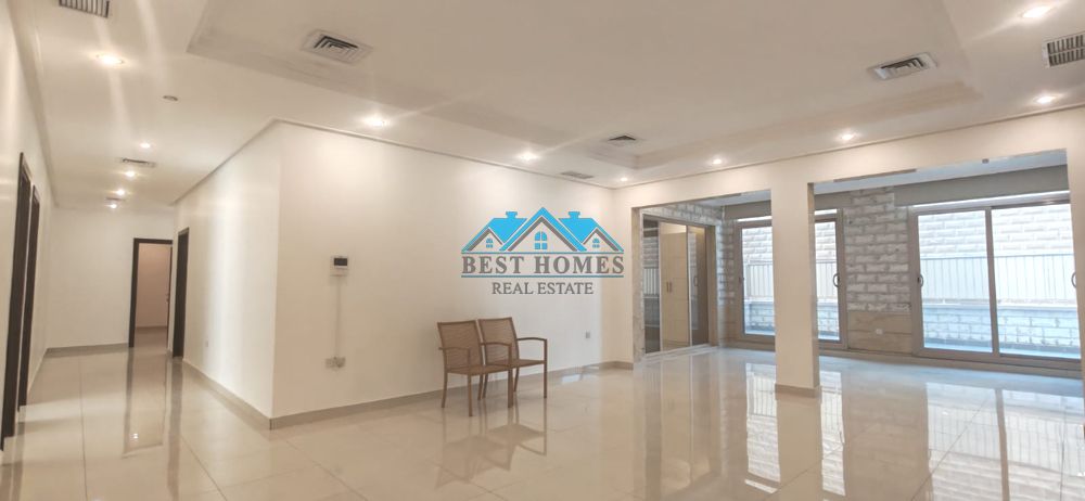 Spacious five - bedroom floor in Bayan, two living areas, big balcony, five master bedrooms, kitchen with appliances, maid's room, laundry room, two car parking spaces, rent KD1500
