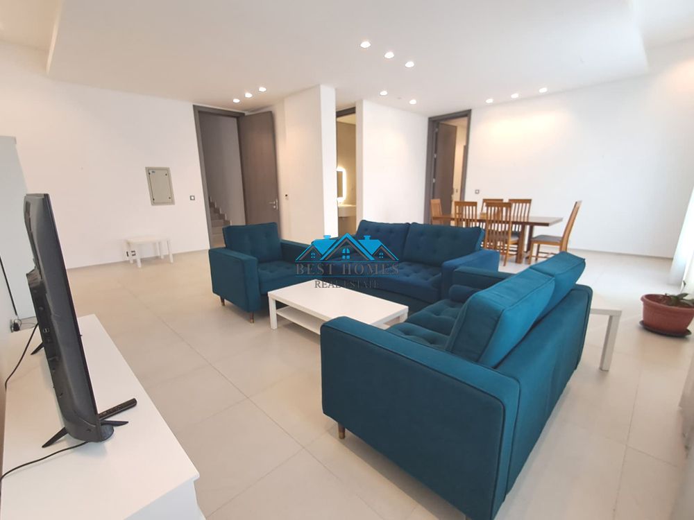 Modern 3 - bedroom furnished floor house in Mishref. Good size living hall with big balcony. 3 master bedrooms with furniture. Fully equipped kitchen. Maid's room. 2 car parking. rent KD1000