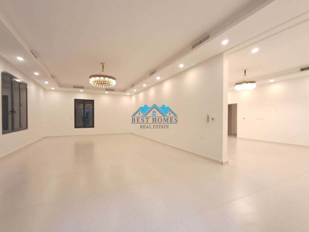 A 5 - bedroom ground floor duplex in Fnaitees, with a ground floor and basement, 2 living areas, 5 bedrooms, a kitchen, a maid's room, a laundry room, a driver's room, and 5 car parking spaces, available for rent at KD1350