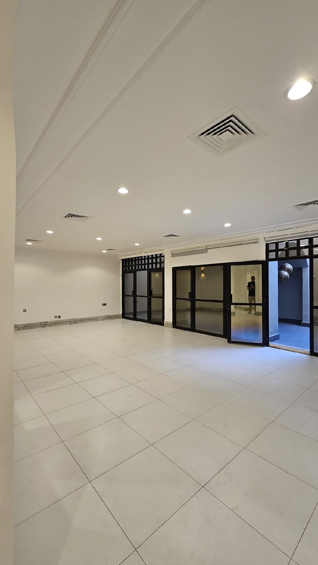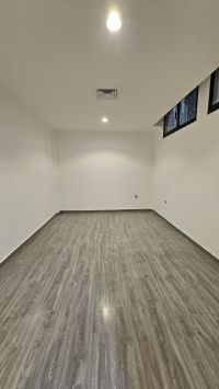 For rent in Jabriya, Block 5, a basement floor with a large private yard, super deluxe finishing, spacious areas and modern design, two parking spaces, a nearby square, close to services, everything is central. The floor consists of 4 bedrooms including 2 master bedrooms, a dressing room, a jacuzzi, a hall, a large private yard, a salon, an external bathroom, a fully equipped modern kitchen, a maid's room with its own bathroom, a storage room, a driver's room with its own bathroom, all totaling 5 bathrooms. The rent is 900 Kuwaiti dinars inclusive of everything.