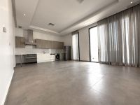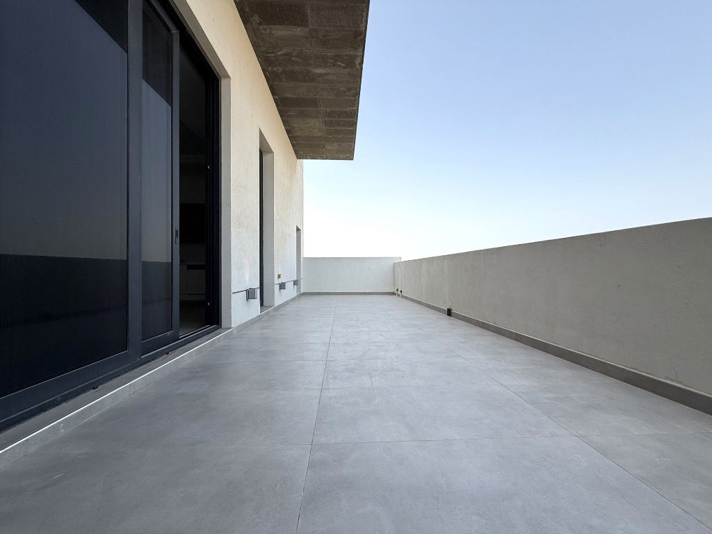 An elegant unfurnished apartment in Fintas containing two bedrooms, two bathrooms, a living room with an open kitchen, a terrace, and a shaded parking space for one car. The rent is 550 Kuwaiti Dinars per month. Please contact Horizon Q8 Real Estate Company. A one-month rental deposit and real estate fees equivalent to half a month's rent apply. The map location is for guidance purposes.