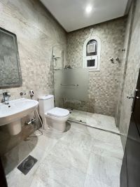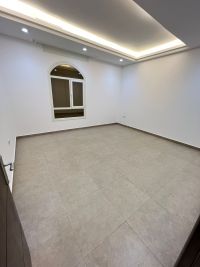 For rent, an apartment on the first floor in the Al-Sadeeq area, corner location, close to the mosque and cooperative. It includes an elevator. The apartment consists of 4 rooms, including two master bedrooms with closets, two rooms with a shared bathroom between them, a living room and a salon with a bathroom, a guest washroom, a fully equipped kitchen, a maid's room with its own bathroom, balconies with shutters, bathrooms with shower boxes, shaded parking, and a yard. The price is 950 dinars.