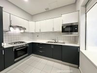 A living room with an open - style kitchen, one bedroom, one bathroom, a kitchen, built - in wardrobes, a shared swimming pool, a gymnasium, a kids'play area, and parking. rent is KD550 (fully furnished)