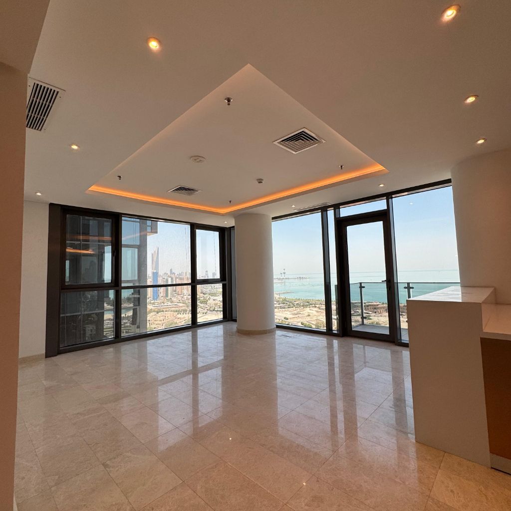 A semi furnished apartment for rent in the Hessa Al - Mubarak suburb. Total area is 120 SQM, with high - end finishing and a sea view. It consists of 2 bedrooms, one of which is a master bedroom, a living room with a balcony, a fully equipped American - style kitchen, 4 bathrooms, a maid's room with its own bathroom, and features a lobby, security, cameras, a swimming pool, a gym, and basement