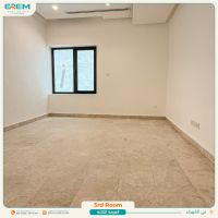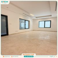 For rent in the Al - Shuhada area, an apartment with super deluxe finishing consisting of a reception hall, 3 bedrooms including 1 master bedroom, a kitchen, a maid's room with a bathroom, and shaded parking spaces. The rent is 550 Kuwaiti dinars