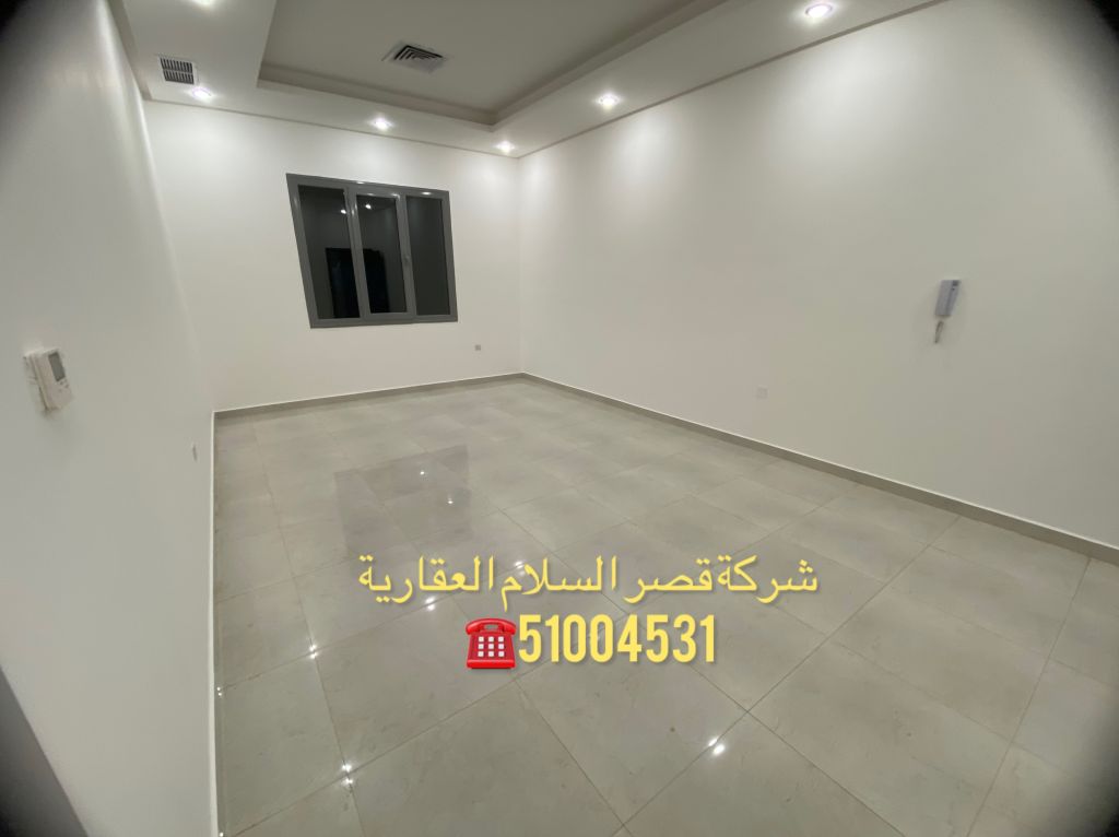A ground-floor apartment with a private entrance, in Abu Fatira, Area 7. Acceptable for a lady. It contains a living room with electric shutters, three bedrooms including a master bedroom and two bedrooms with a shared bathroom, a large kitchen, a maid's room with a bathroom, and an external storage room next to the kitchen. The rent is 450 dinars, with two shaded car parking spaces and very easy access.