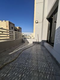 For rent: A luxurious apartment in Al-Rumaithiya, first floor with elevator, featuring a large balcony in a prime location. Modern building with ultra-super finishing and very large spaces. 3 bedrooms including a master bedroom and two bedrooms sharing a bathroom. Large living room, large equipped kitchen, maid's room, laundry room, 3 bathrooms. Central air conditioning, central satellite, central boiler. Two shaded parking spaces. Close to the branch and mosque. Rent: 650 KD inclusive. Half-month refundable security deposit. Contact: Abu Sultan.