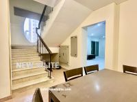 Spacious 3 - bedroom duplex in Fintas offering comfortable family living. It features two master bedrooms, a maid's room with a bath, two living areas, a dressing room, a guest toilet, a kitchen with dining space, and parking. rent is KD650