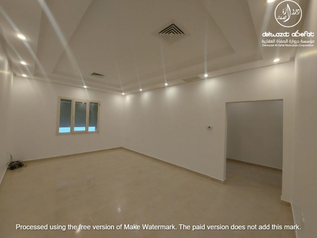 For rent: An apartment in Abu Fatira, Area 1, consisting of 3 bedrooms including one master bedroom and two bedrooms with one shared bathroom, a living room, a kitchen, a maid's room with a bathroom, and two shaded parking spaces. Rent is 350 Kuwaiti Dinars, new. Code: 5560. For contact - Advertisement license number: T A 161 / 2024.