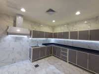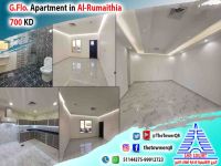 For rent in Al-Rumaithiya - Ground floor apartment with a private entrance - Super deluxe finishing - 4 master bedrooms - Large living room - Maid's room with a bathroom - Equipped kitchen - Covered parking. Rent is 700 KD. For inquiries.