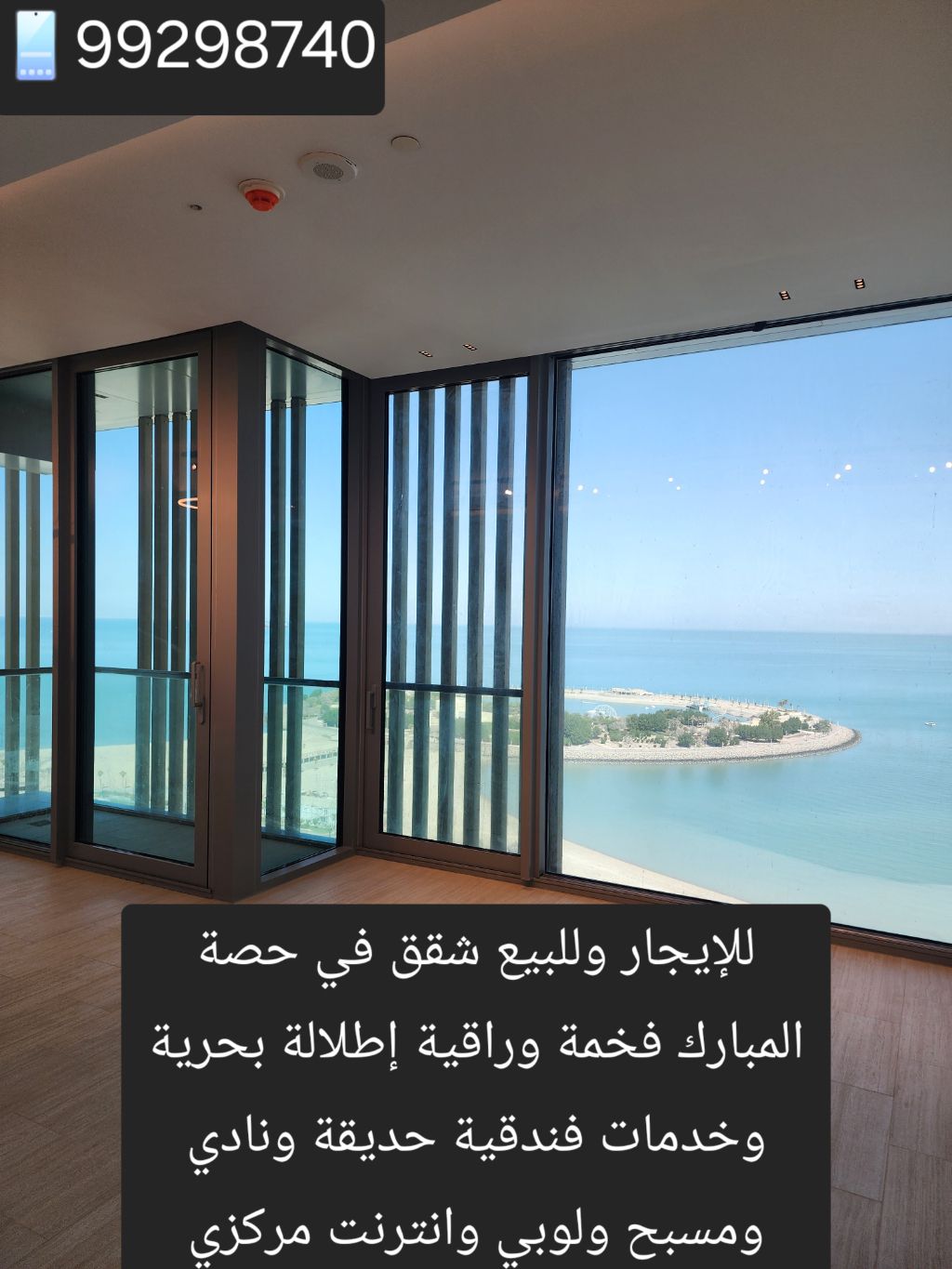For rent and for sale, luxurious and elegant apartments in the Hessa Al-Mubarak suburb with a sea view, hotel services, a garden, a club, a swimming pool, a lobby, and central internet.