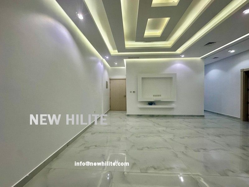 Spacious 4 - bedroom apartment with two master bedrooms, a large living area, closed kitchen, guest bathroom, and maid's room with attached bath. Basement option available with the same layout. rent KD650, basement KD500