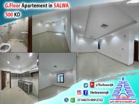 For rent in Salwa, a ground floor apartment - new finishing, super deluxe - first occupant - 3 bedrooms (including a master bedroom - two rooms with a shared bathroom) large living room - maid's room with bathroom - equipped kitchen - shaded parking. Rent is 500 KD. For inquiries.