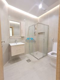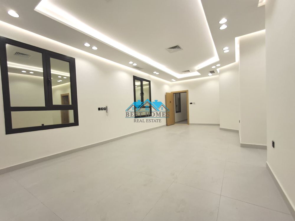 A modern apartment in Al - Surra, residential area, with 3 master bedrooms, a kitchen, a maid's room, and two parking spaces in the basement for rent at a price of 725 Kuwaiti dinars