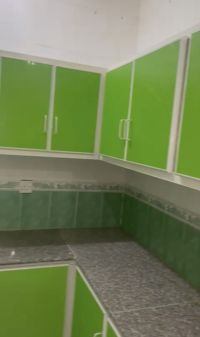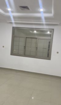 For rent, an apartment in Abdullah Mubarak, second floor with elevator. It consists of 4 bedrooms, with every two bedrooms sharing a bathroom, a fully equipped kitchen, and a parking space. The rent is 360 dinars. A small family is preferred. Please contact.