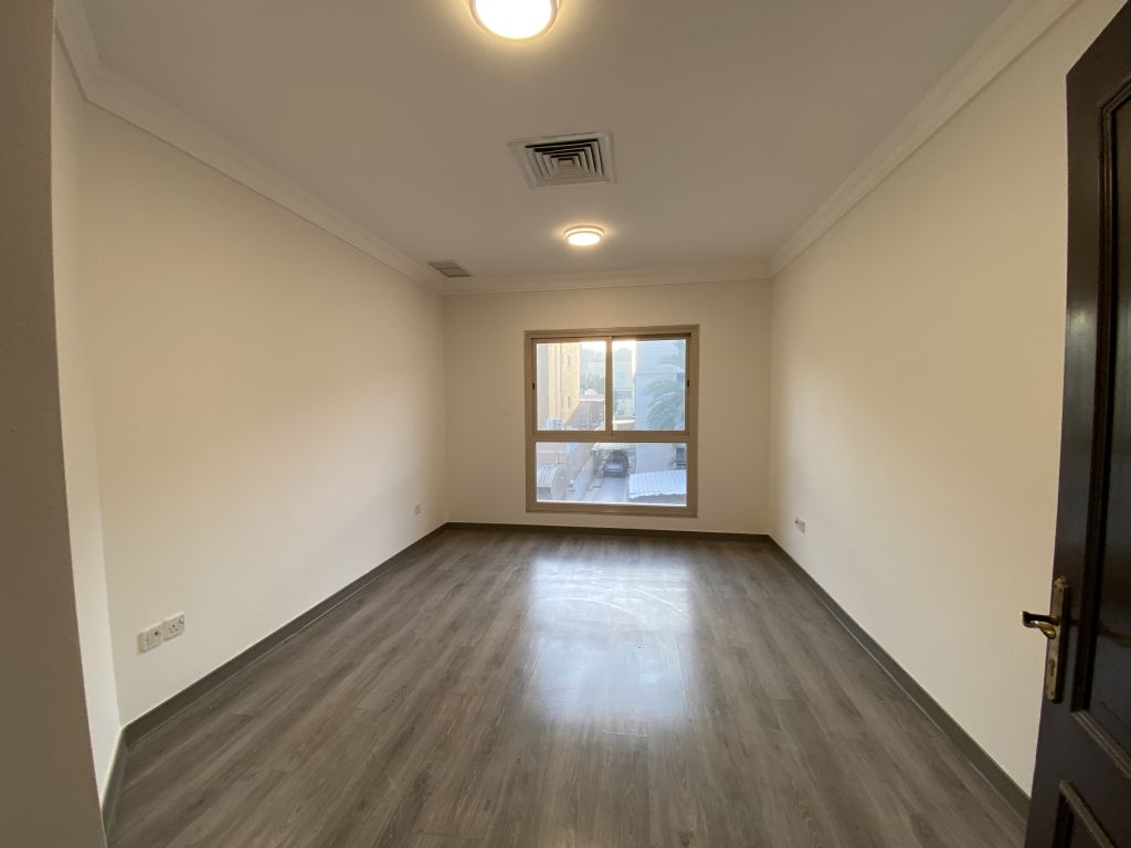 For rent, an apartment on the second floor with an elevator in the Jaberiya area. It consists of an isolated hall with a balcony, 3 bedrooms including a master bedroom, two bedrooms with a shared bathroom, and a maid's room with a bathroom. Easy access. Rent is 650 dinars.