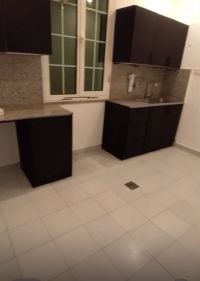 For rent: An apartment in Al-Shuhada with a private entrance, ground floor, elevator, deluxe finishing. It consists of 3 bedrooms including a master bedroom, a large living room, a fully equipped kitchen, a maid's room, a yard, 3 bathrooms, and 2 parking spaces. Rent is 450 dinars. For contact.