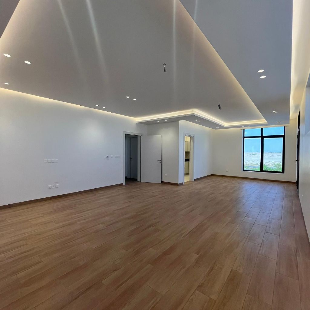 A residential apartment for rent in the Al Khiran residential area, prime location, super deluxe finishing. It consists of a living room with a balcony, a kitchen, 3 master bedrooms with 2 balconies, a total of 5 bathrooms including a guest bathroom, a maid's room with its own bathroom, a laundry room, car parking, surveillance cameras, elevators, includes water, electricity, and maintenance. rent