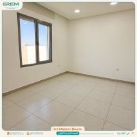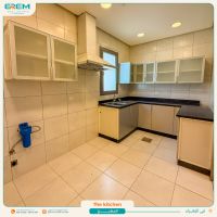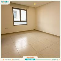 For rent in Al Zahra, an apartment with a roof, super deluxe finishing, consisting of a living room, two bedrooms including a master bedroom, a kitchen, a maid's room with a bathroom, and shaded parking. The rent is 450 Kuwaiti Dinars.