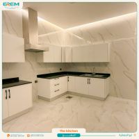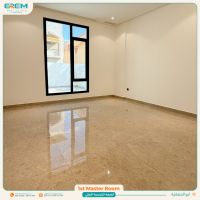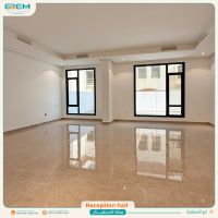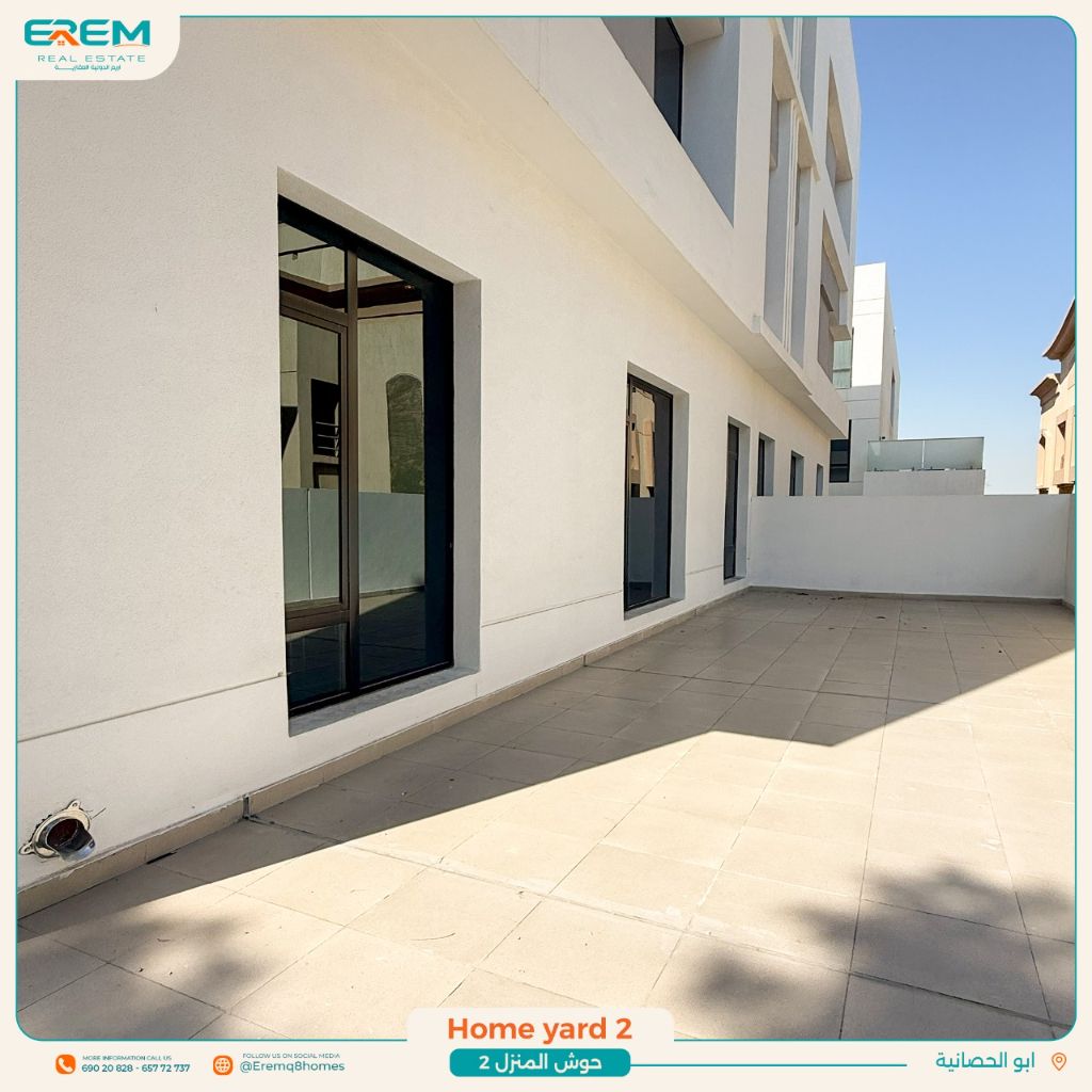 For rent in Abu Al Hasaniya, a ground floor apartment with a courtyard, new finishing, super deluxe. It consists of a hall with a guest bathroom, 2 large courtyards, 3 master bedrooms, a kitchen, a laundry room, a maid's room with a bathroom, and shaded parking. The rent is 800 Kuwaiti Dinars. Code: RA-HN-4.