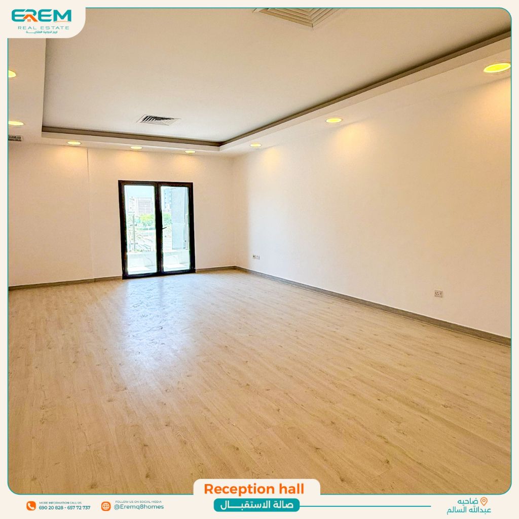 For rent: An apartment with a balcony in the Abdullah Al-Salem suburb. Prime location, super deluxe finishing. It consists of a hall with a guest bathroom, 3 master bedrooms, a kitchen, a maid's room with a bathroom, and shaded parking. For rent: 800 Kuwaiti Dinars. Code: RA-AU-4.