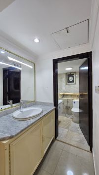 For rent: A floor in Salwa, Plot 12, one of the finest plots in Salwa. Easy access and exit. Located on the second floor with an elevator. Spacious areas with a balcony. Owner-occupied. Parking available. No objection to registering the contract for a lady, provided she is employed with her children. The floor consists of two large living rooms with a guest bathroom, 3 bedrooms including a master bedroom, a balcony, a kitchen, and three bathrooms in total. Rent: 550 Kuwaiti Dinars + one month free. Rent: 550 Kuwaiti Dinars + half-month security deposit + one month free.