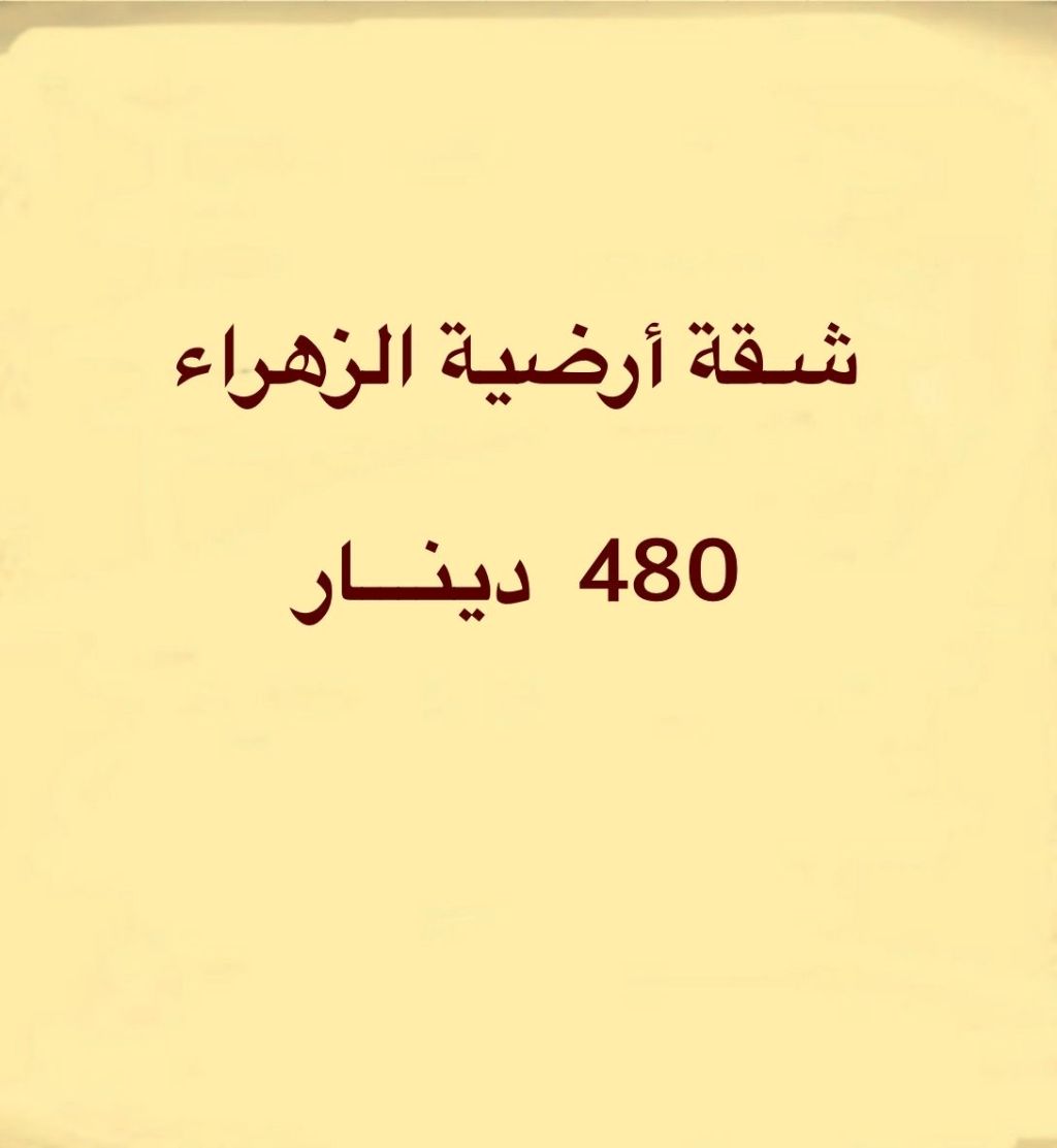 For rent A ground - floor apartment in Al Zahra, on the ground floor. It features a rental system, a prime location, and easy access. The apartment consists of 3 bedrooms, including 1 master bedroom, a maid's room with its own bathroom, a large living room, a fully equipped kitchen, and parking spaces available in front of The Villa. There is also school parking. The rent is 480 dinars. For inquiries