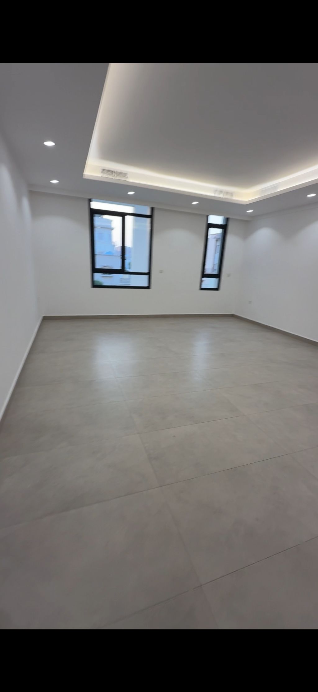 For rent: A luxurious first-floor apartment in Al Rawdah, brand new and never occupied before. It consists of 4 large master bedrooms, a large living room with a guest bathroom and laundry area, a large fully equipped kitchen, a maid's room with its own bathroom, a laundry room, and 2 large balconies. Super deluxe finishing, spacious areas, 2 covered parking spots, easy entrance and exit, close to services. Rent is 1100 KWD plus a half-month commission. For viewing, if there is no response, please leave a message.
