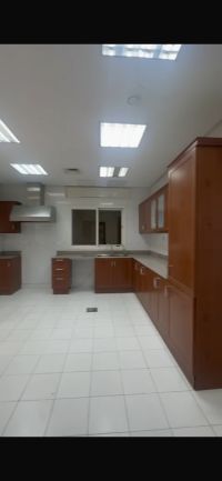 For rent, second floor with large spaces in Salwa. 4 bedrooms, all master bedrooms, large living room, guest bathroom, equipped kitchen, maid's room with its own bathroom, laundry room, two car parking spaces, basement. Rent is 750 Kuwaiti Dinars.