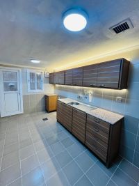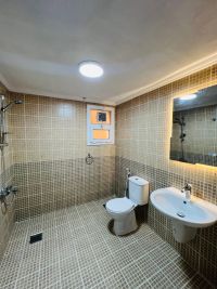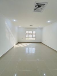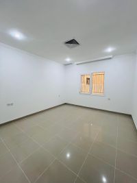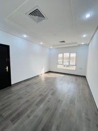 A ground-floor apartment for rent in Al-Yarmouk, Piece 2. It consists of three rooms, including a master room and two other rooms served by one bathroom, a kitchen, a living room, a maid's room with a bathroom, and a laundry room. It has shaded parking spots next to each other, a location near services, and easy access. The rent is 550 Kuwaiti dinars, including electricity, water, maintenance, and air conditioning. For inquiries, please contact the number provided.